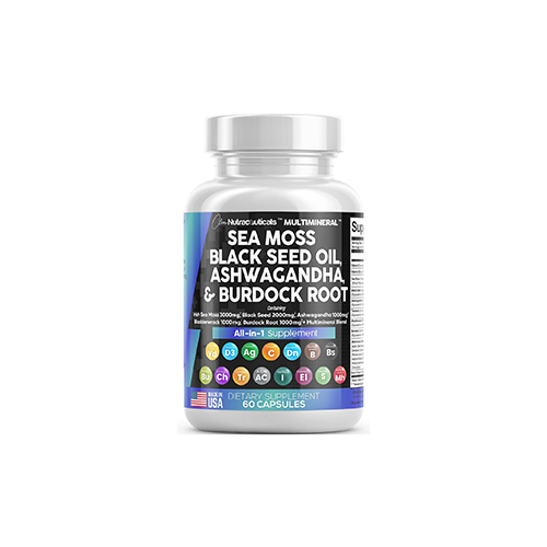 A Powerful All In One Supplement - MultiMineral is overflowing with potent Sea Moss Supplement, Black Seed Oil capsules, Aswagandhada capsules, Burdock Root, Bladderwrack and turmeric powder. Clear out those countless supplements in your supplement cabinet, and replace it with just one seamoss powder, black seeds oil, aswagandhada capsules, and burdock supplement 15-in-1 formula from . We made Irish seamoss bladderwrack burdock capsules better by adding black seed.